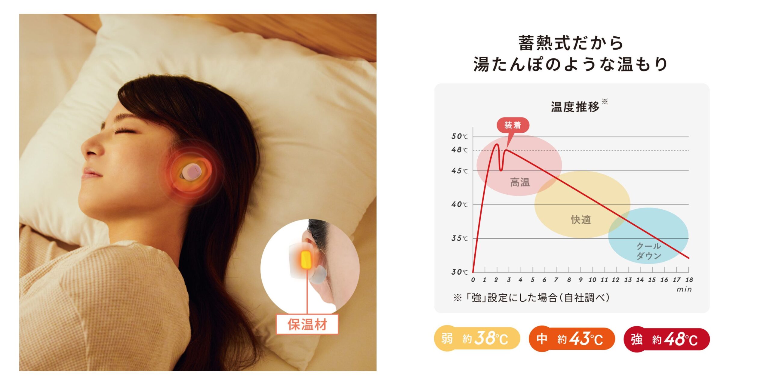 自律神経の集まる耳をじんわり温め、心地よいぬくもりで気持ちをリラックス。耳せん効果で周囲の音をやわらかく遮断し、就寝前や仕事の休憩時間、移動中など、様々なシーンで自分だけの静かな時間を作ることができます。