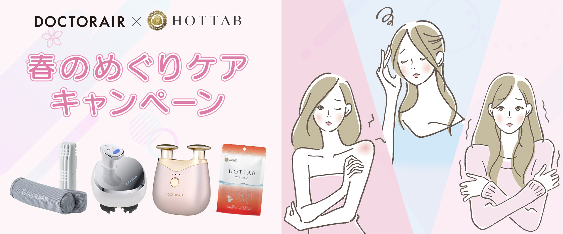 全国約4,000店で取り扱われているトータルボディケアブランド「ドクターエア」(㈱ドリームファクトリー:大阪)と、純正重炭酸入浴剤の製造特許技術を保有する、重炭酸の開発元であり、業界のパイオニアとして多くのメーカーにもOEM提供する「HOT TAB」(㈱ホットアルバム炭酸泉タブレット:東京)は、春の季節の変わり目に感じやすい“なんとなく不調”に着目し、共同企画「春のめぐりケア キャンペーン」を2026年3月25日(水)より開始いたします。
