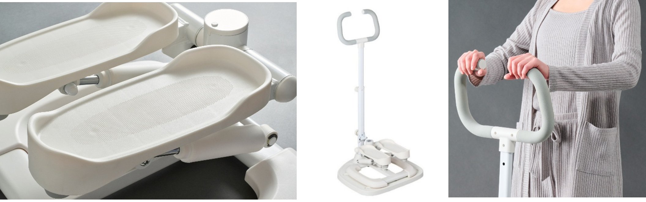 幅広い年代の方が安心して運動を続けられるよう、安全性にも配慮しました。滑り止め加工を施した幅広ワイドペダルと、前後の保護カバーにより、足元に不安を感じにくいやさしい設計。さらに、別売りの専用ハンドルに設置することで、乗り降り時や運動時も姿勢を安定しやすくし、不安のある方でも始められます 。足腰の衰えが気になり始めた方から、忙しい毎日の中で効率よく身体を動かしたい方まで、家族みんなの運動習慣をサポートします。