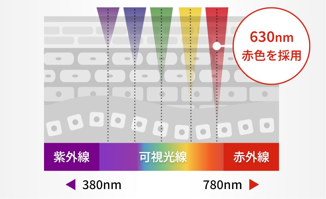 美顔器でも良く使われる赤色LEDを搭載!