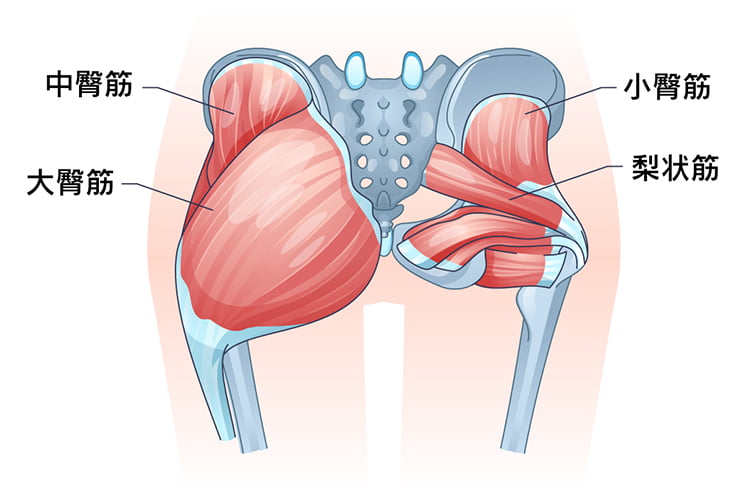大殿筋・中殿筋・小殿筋からなる殿筋は、股関節を伸ばす機能、股関節を外旋・内旋させる機能を持っています。殿筋が過度に緊張していると、股関節がうまく回らなくなってスイングに悪影響があるばかりか、片足でバランスを取って立つことが難しくなる場合もあります。