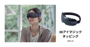 目の周りをやさしくタッピングする、充電式のホットアイマスクを使った「目元ケア」もおすすめ。三橋さんは「就寝前にベッドで横になって利用しています」と話します。